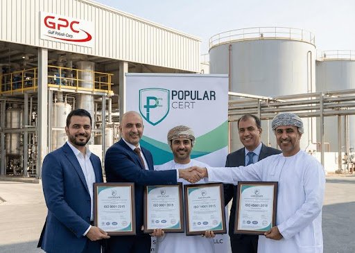 Muscat, Oman – [12-Dec-2025] Popularcert, a leading provider of integrated management system consulting and training services in the Gulf region, is proud to announce the successful certification of its client, Gulf Starch Plant (Division of Local Line LLC), to three internationally recognized ISO standards. Following a rigorous audit process, the Muscat-based manufacturer of drilling and production chemicals has now been certified for ISO 9001:2015 (Quality Management), ISO 14001:2015 (Environmental Management), and ISO 45001:2018 (Occupational Health & Safety).